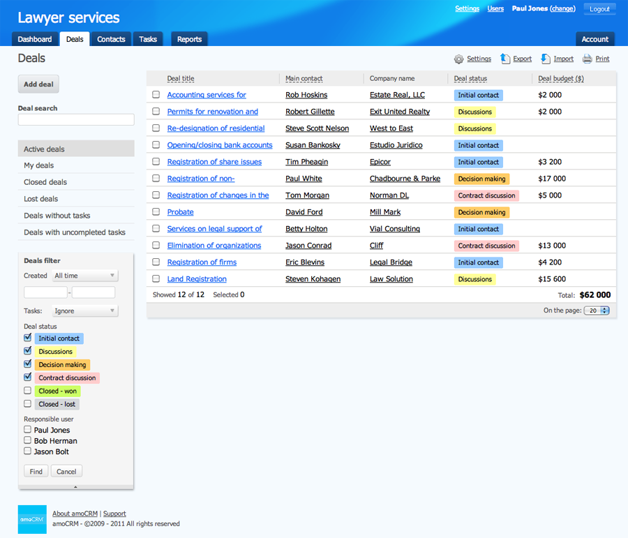 As a hosted solution, amoCRM brings a powerful combination of crm funcitonality, ease of use, and low cost. You can try amoCRM’s hosted solution free at www.amocrm.com.
